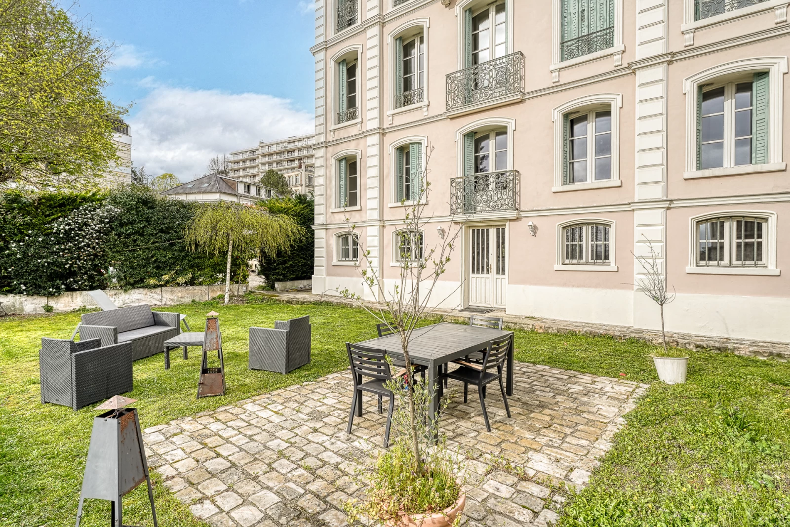 Venez découvrir en exclusivité ce bien exceptionnel! Vous serez séduit par la lumière et les volumes de ce chaleureux duplex. Ce bien, situé dans un cadre unique, une maison bourgeoise de 1805, ou vécut Edmond Rostand (dont les armoireries ornent le portail), d'une surface Carrez de 225,4 m2, offrant de très beaux volumes; est composé d'un jardin privatif de 140 m2 environ avec une vue imprenable et exceptionnelle sur Paris. Une cour coté Sud, une cour coté Nord, 2 garages clos et couverts, 1 remise fermée, 4 abris voutés (coté nord) et 1 stationnement extérieur dans la cour du rez-de jardin complètent cet appartement. Ce bien unique de 10 pièces (dont 5 chambres) est composé, en rez-de jardin d'un double séjour (orienté Sud-Est) avec insert à double face ouvrant sur une salle à manger et une cuisine entièrement équipée et aménagée en 2016.Ces 3 pièces vous offrent près de 80m2 d'espace de réception. 2 chambres avec mezzanine (donnant sur la cour coté Sud), 1 toilette avec lave-mains, 1 salle de bain familiale (avec baignoire à jets, douche et double vasque) ainsi qu'une salle de sport/sauna/jacuzzi,1 home cinéma,1 dressing/buanderie/chaufferie invitent à la détente et au bien-ètre! A l'entresol, 3 chambres dont une avec balcon et une entièrement parquetée en Point de Hongrie, 1 salle de douche (avec double vasque) ouverte sur une chambre et 1 toilette. Ce bien, baigné de lumière, profitera à une jolie famille en quête d'un sweet-home dont les généreux volumes permettent à chacun d'avoir son espace privatif. Aucun travaux à prévoir. Lieu de vie unique et idéal, confort et cocooning assurés, bref le bonheur! Prix cohérent et attractif pour une propriété exeptionnellement bien située: accès rapide A14, commerces de proximité à 8 minutes à pied, centre ville à 12 minutes à pied, marché du centre à 20 minutes à pied. Magnifique église St Wandrille à 100 mètres,Chateau de St Germain en Laye (où Louis XIV est né) avec son parc historique (ancienne réserve de chasse du Roi) à 500 mètres. Ecoles publiques: écoles maternelles et primaires à 5 minutes à pied, collège à 10 minutes à pied et lycée à 7 minutes à pied. Ecoles privées: Saint Erembert et Institut Notre Dame à 10 minutes à pied et Lycée Internationnal à 10 minutes en voiture. Je vous laisse me contacter pour une visite à votre convenance, le propriétaire m'a confié les clefs afin de faire visiter ce bien au plus vite.